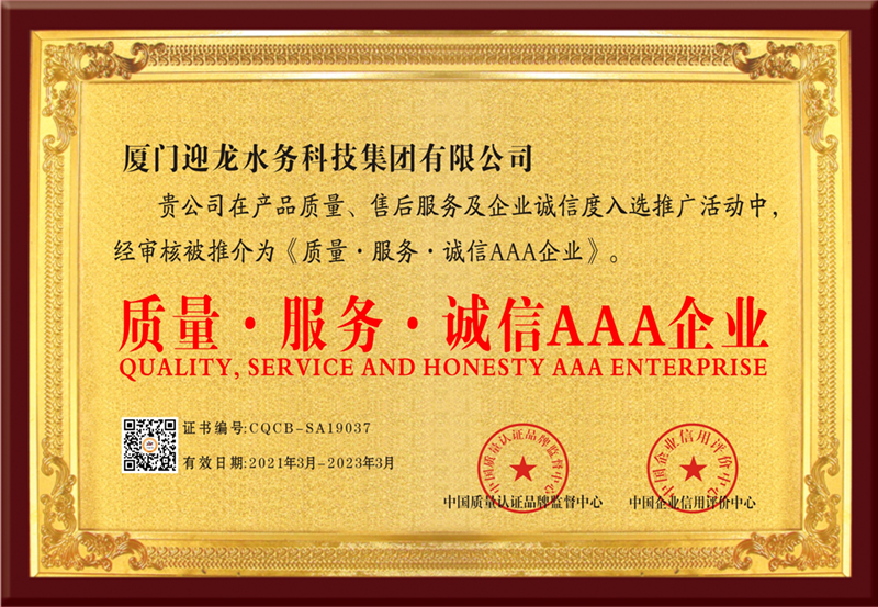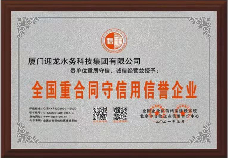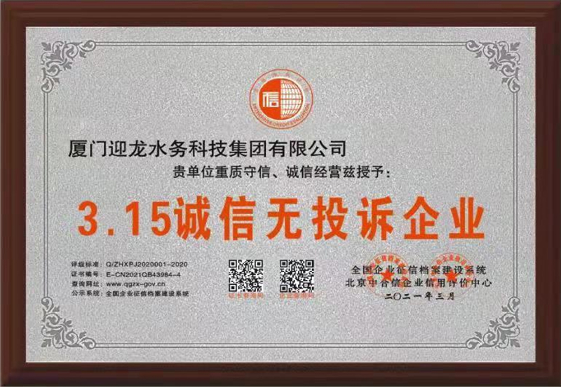 廈門(mén)迎龍水務(wù)科技集團(tuán)有限公司是上海迎隆水務(wù)工程設(shè)備(集團(tuán))有限公司全資子公司,注冊(cè)資金8666萬(wàn)元,是集研發(fā)、生產(chǎn)、銷(xiāo)售、安裝鋼塑復(fù)合水箱、不銹鋼水箱、箱泵一體化、BDF地埋式水箱、變頻恒壓給水設(shè)備于一體的綜合性供水公司。公司通過(guò)ISO9001:2015標(biāo)準(zhǔn)認(rèn)證,同時(shí)獲得福建省衛(wèi)生廳頒發(fā)“衛(wèi)生許可批件”“福建省疾病預(yù)防控中心的檢測(cè)報(bào)告”以及榮獲“中國(guó)馳名品牌”“中國(guó)百?gòu)?qiáng)優(yōu)秀企業(yè)”“中國(guó)高新技術(shù)企業(yè)”“全國(guó)給排水行業(yè)十大著名品牌”“國(guó)家權(quán)威檢測(cè)質(zhì)量合格產(chǎn)品”“質(zhì)量.服務(wù).誠(chéng)信AAA企業(yè)”"科技型中小企業(yè)”等榮譽(yù),并且獲得多項(xiàng)行業(yè)專(zhuān)利,在國(guó)內(nèi)外有較高的知名度。
